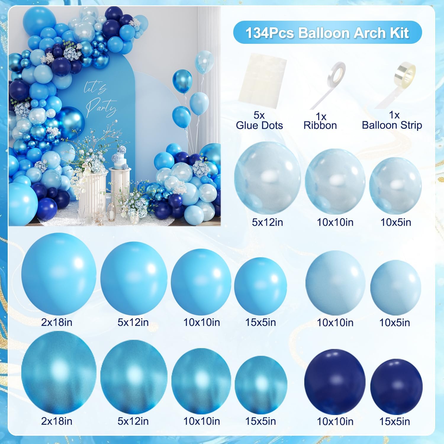 Blue Balloon Garland Arch Kit, 134Pcs Royal Metallic Light Navy Pearl Blue Balloons for Gender Reveal Baby Shower Wedding Bridal Shower Birthday Party Decorations