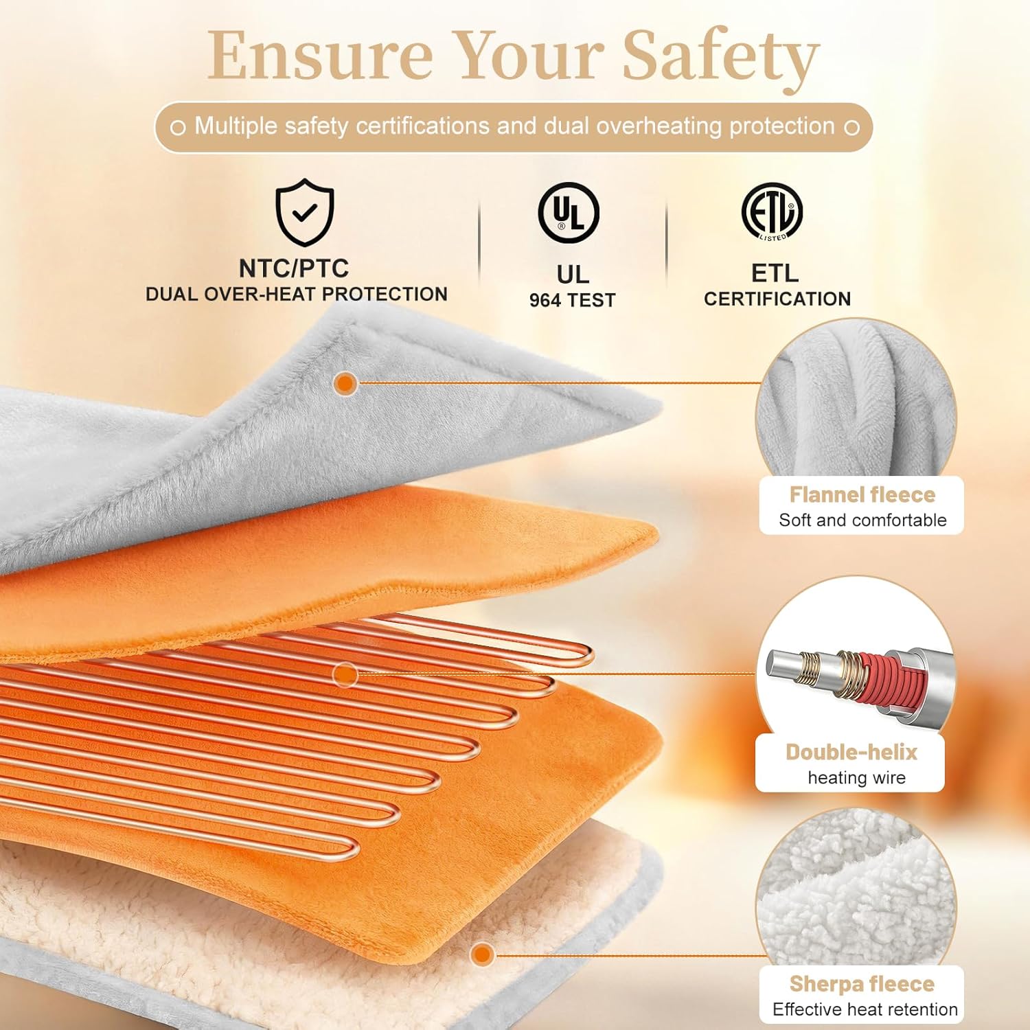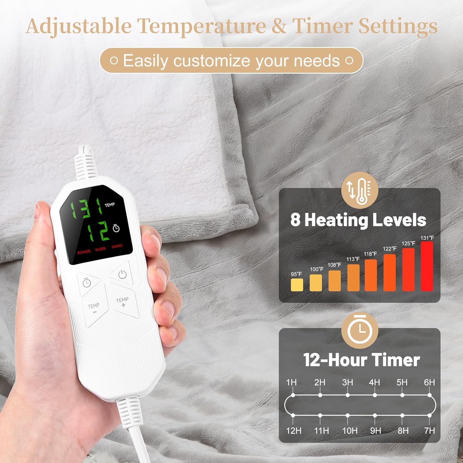 Electric Heated Throw Blanket 50″ x 60″, Soft Plush Flannel & Sherpa Electric Blanket with 8 Heat Settings, 1-12H Auto-Off, Fast & Even Heating, Machine Washable, Ideal for Home & Office, Light Gray