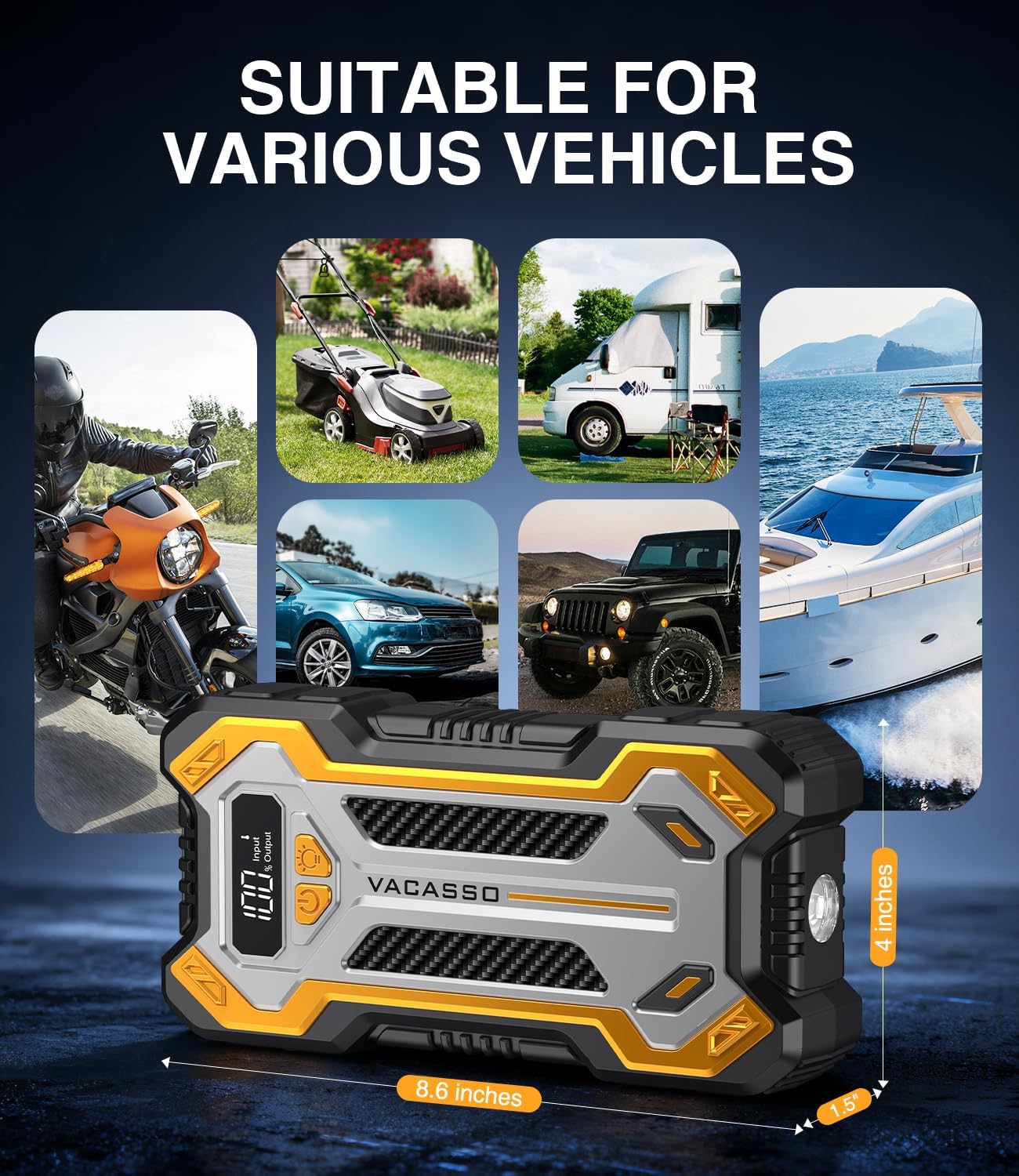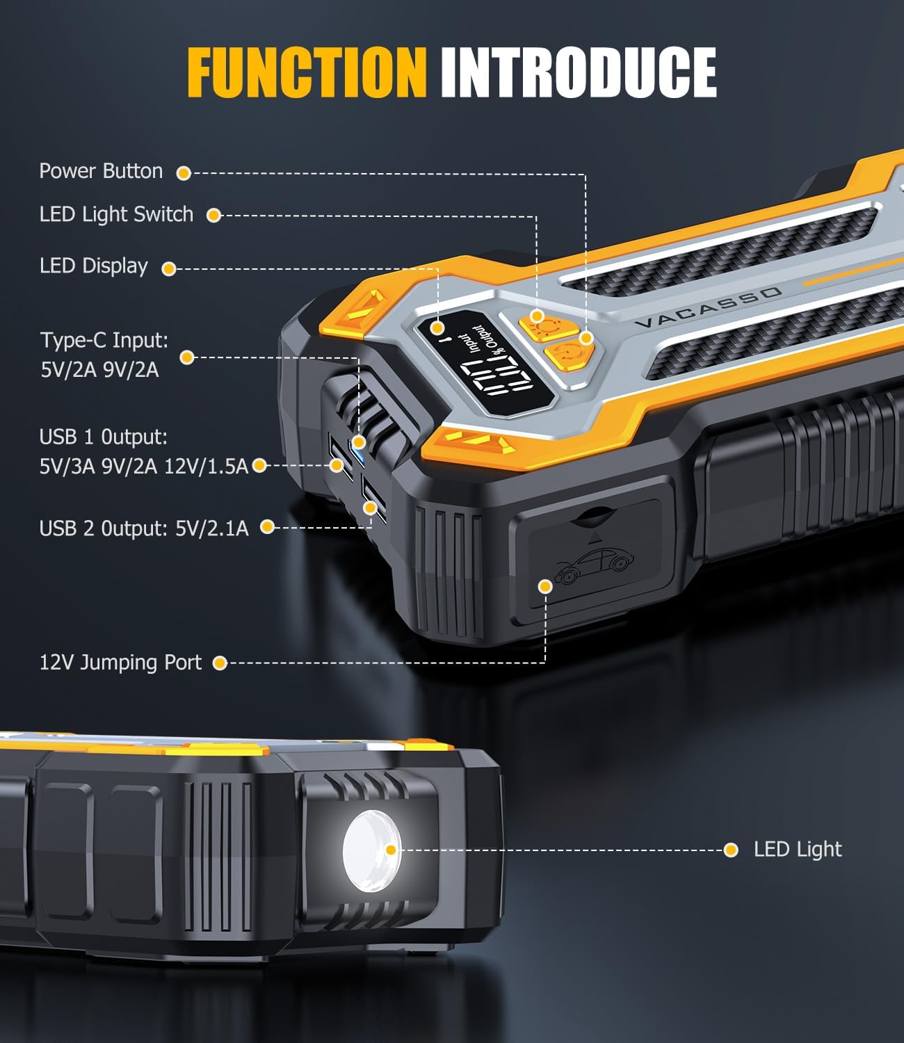 Car Jump Starter, VACASSO 5000A Car Battery Jump Starter for Up to 10L Gas and 8L Diesel Engines, 12V Portable Jumper Starter Power Pack with Booster Car Starter Jump Box, LED Light, Jumper Cable