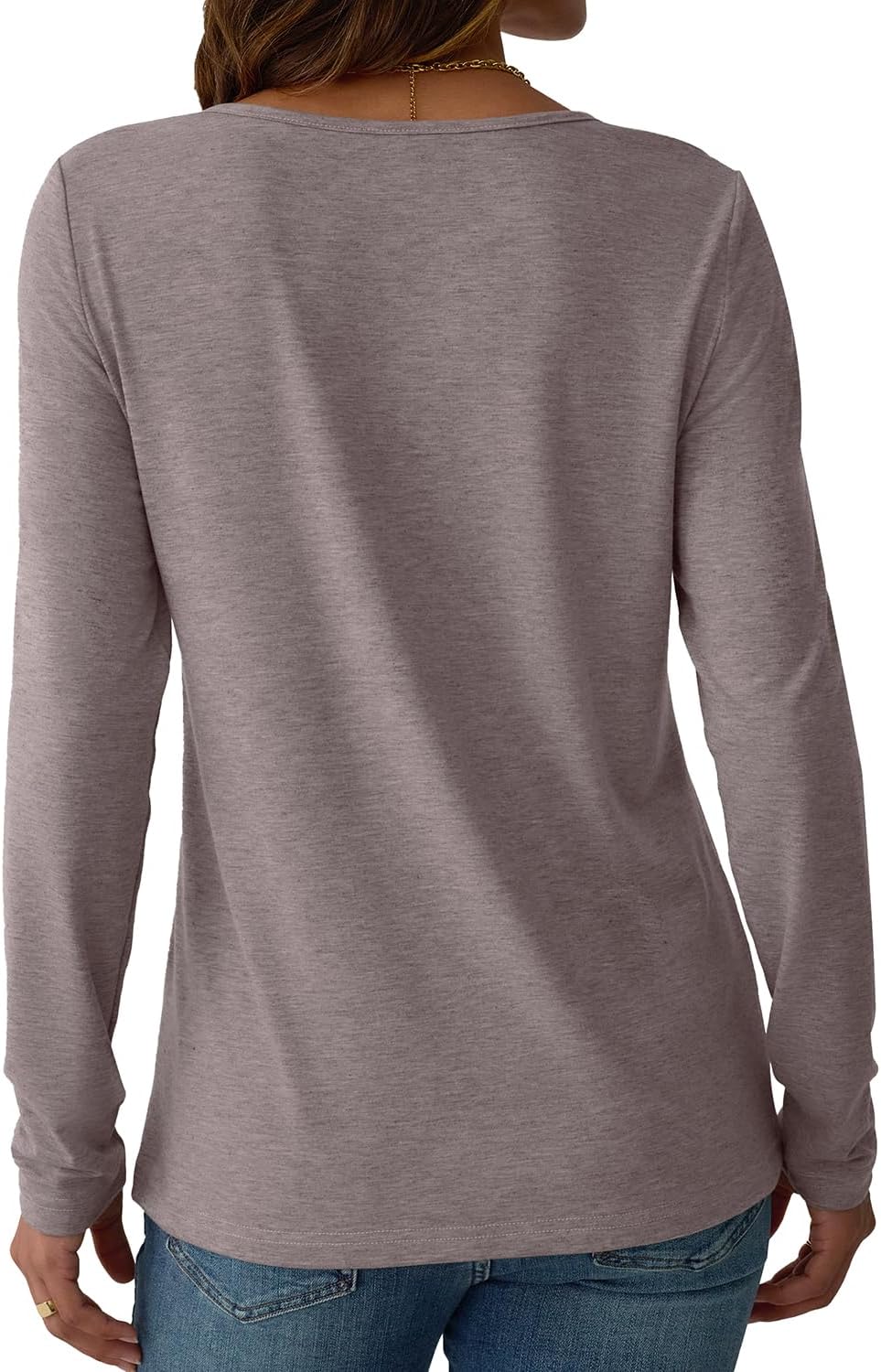 Lighweight Long Sleeve Tops for Women Crewneck Basic Tops with Pleated Front