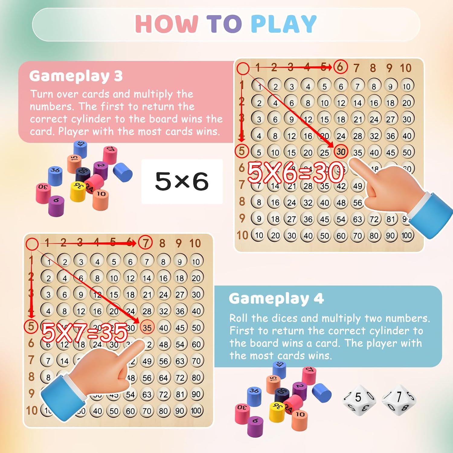 Safe Wooden Material: Crafted from premium sustainable wood material with non-toxic water-based paints,this montessori multiplication board game is built to last and not easy to damage,well-made and without annoying smell. With clear number carving,the smooth finish and safe edges ensure a comfortable and secure playing experience. It helps children learn while playing,identify numbers,develop their intelligence,color differentiation ability,calculation ability and responsiveness skills